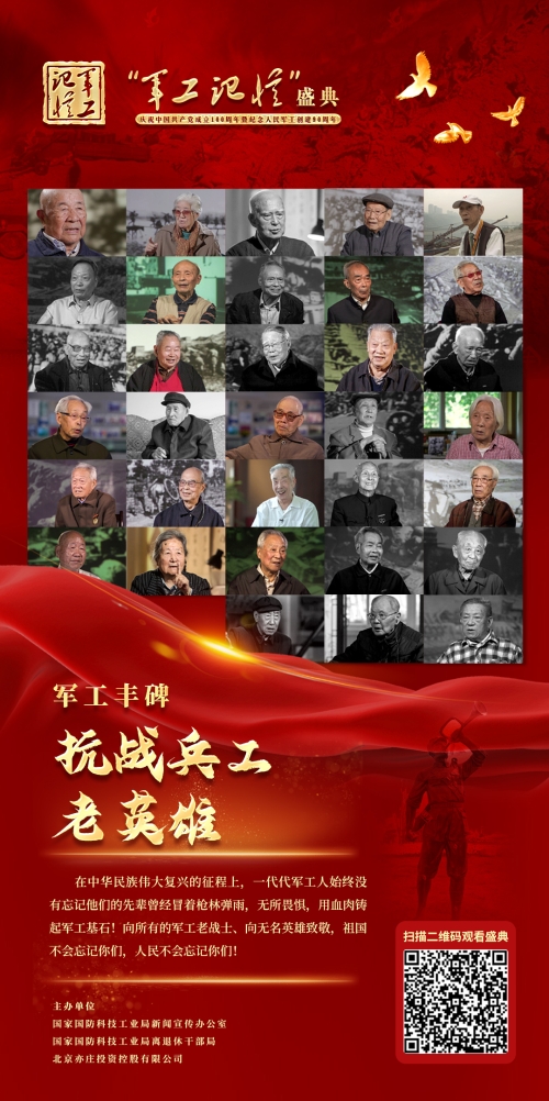 為慶祝中國共產(chǎn)黨成立100周年和紀(jì)念人民軍工事業(yè)創(chuàng)建90周年,國防科工局新聞宣傳辦公室、國防科工局離退休干部局、北京亦莊投資控股有限公司聯(lián)合主辦,各軍工集團(tuán)公司和中物院協(xié)辦的“軍工記憶”特別節(jié)目,于7月31日正式在央視頻上線。