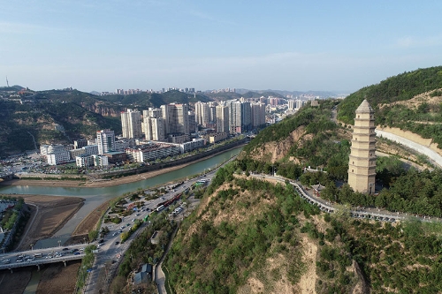 這是4月22日拍攝的延安市寶塔山(無人機照片)。新華社記者 張博文 攝